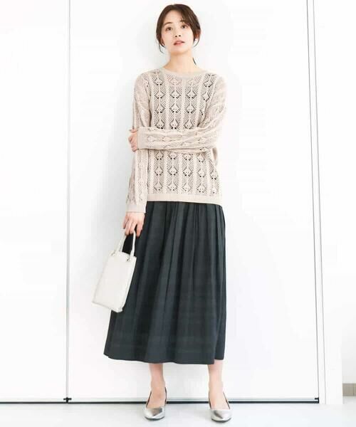 リバーシブルで違った表情を楽しめるので、ご旅行などにもおすすめ。ウエストゴム仕様で、ラインが出やすいデザインなので気になる方はトップスをアウトでややカジュアル見えに着こなすのがおすすめです。涼しげな風合いの素材なので汗ばむ季節も活躍してくれるはず。