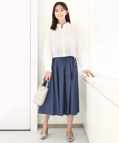 ブラウスやコンパクトなトップスと合わせると女性らしいお仕事スタイルが完成します。長すぎず足首がのぞく着丈もきれい見えな印象ですが、あえてスニーカーやスウェットなどのカジュアルアイテムと合わせてラフな着こなしもおすすめです。