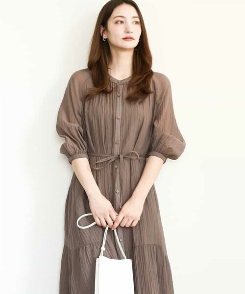 甘すぎないティアードデザインが1枚で映える、この季節におすすめの楊柳ワンピース。しっかりとした長めの丈感が今っぽく、リラックスムードで着用可能な1枚です。素材感はさらりとしたドライタッチな手触りで、ほんのりと涼しげなシアー感があります。同色のインナードレス付きなので、普段のインナーで着用できそうです。ずっしりとした重たさもなく、柔らかな質感で肌あたり良く着られました。