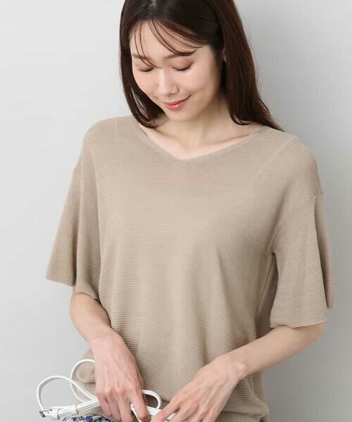 気になる二の腕をカバーするフレアスリーブと、デコルテラインをすっきりと見せるVネックデザインのニットプルオーバー。コンパクトなサイジングで、ニット素材ですがカジュアルすぎず、きれいめシーンにも着こなしていただけます。
