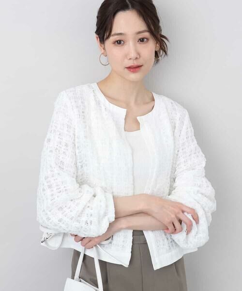 MK MICHEL KLEIN / エムケーミッシェルクラン その他アウター | レースチュールノーカラーライトブルゾン/洗える(ブラック)