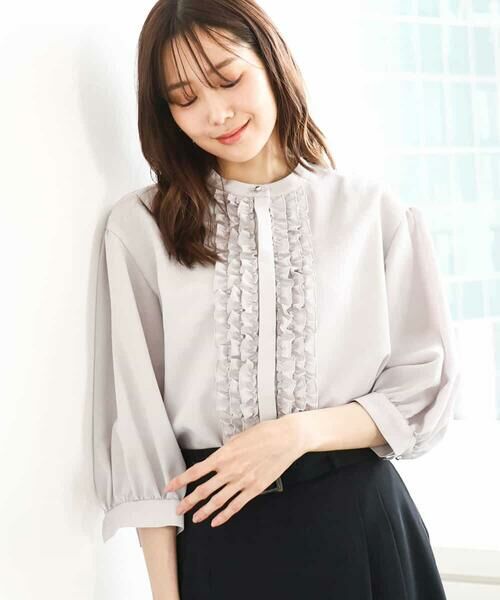 トレンドのフロントフリルデザインのブラウス。大人っぽく着こなしやすいよう、フリルの分量感やサイジングにこだわりました。
