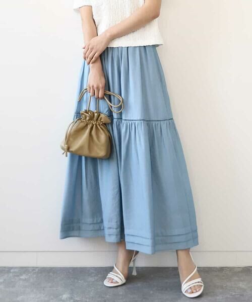 さりげないハシゴレース切替で広がりすぎず、大人っぽく履けるフレアスカート。ナチュラル見えの涼しげな素材感で、暑くなる季節にぴったりです。着心地も軽く涼しいのはもちろん、ウエストオールゴムでラクチン。長めの着丈なので、画像では一段折って履いてます。低身長さんやSサイズ以下の方はヒール合わせが◎。