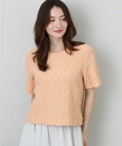 ポコポコとした表面感のカットソーは体の肉感を拾いにくく体型カバーが叶う一枚!見た目的にも可愛いデザインなので1枚着でも映えるアイテムです。ストレッチが効いているので着脱もラクチンでした。