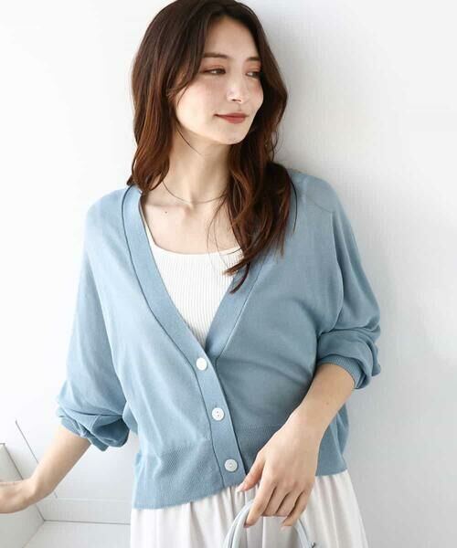 ショート丈のドルマンカーディガン。ドルマンスリーブのやわらかいボリュームがインナーを選ばずに合わせやすい一枚です。フロントの涼しげな貝調ポリエステル釦を使用。