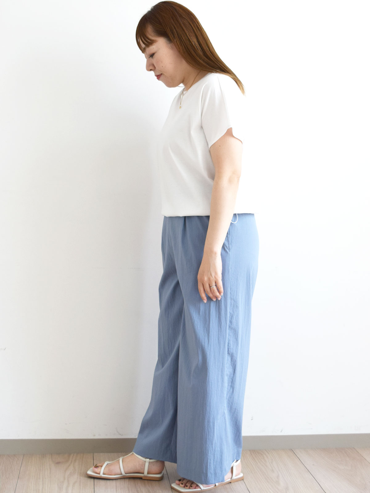 両サイドの裾を絞って着用すればメリハリが出てこなれ感あり!素材はなめらかタッチのコットン100で着心地抜群◎体のラインを拾いにくい程よくゆったりなサイズ感は、風ぬけが良く涼しいのでこれからシーズンにオススメです。