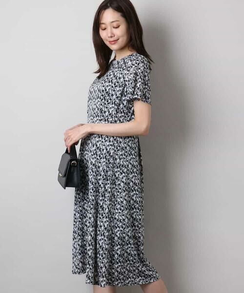 毎日の通勤にもマッチする落ち着いた雰囲気のジャージーワンピース。人気ジャージー素材ワンピースに今季は定番の幾何柄に加えて、無地対応も登場。ウエストから上下に入ったタックがシルエットをきれいに見せながら、着心地の良さも兼ね備えた一枚です。