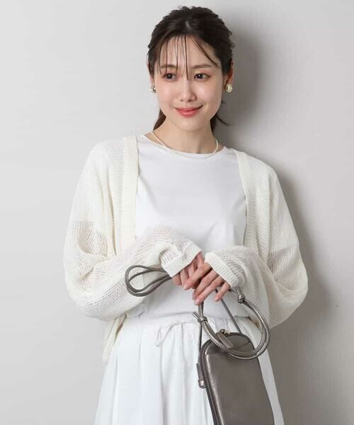 程良いシアーな編み柄のモモンガタイプのニットカーディガン。丸みのある女性らしいシルエットが、リラックスしたやわらかな雰囲気で着こなせます。