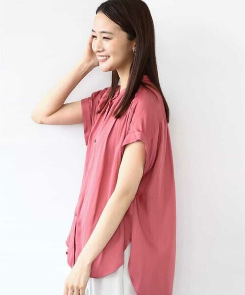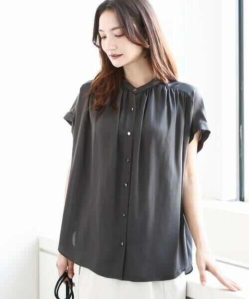 MK MICHEL KLEIN / エムケーミッシェルクラン シャツ・ブラウス | バンドカラーサテンブラウス/接触冷感/洗える(モカ)