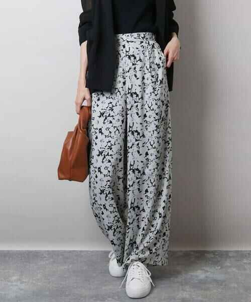 大人っぽい色合いが素敵な柄ワイドパンツ