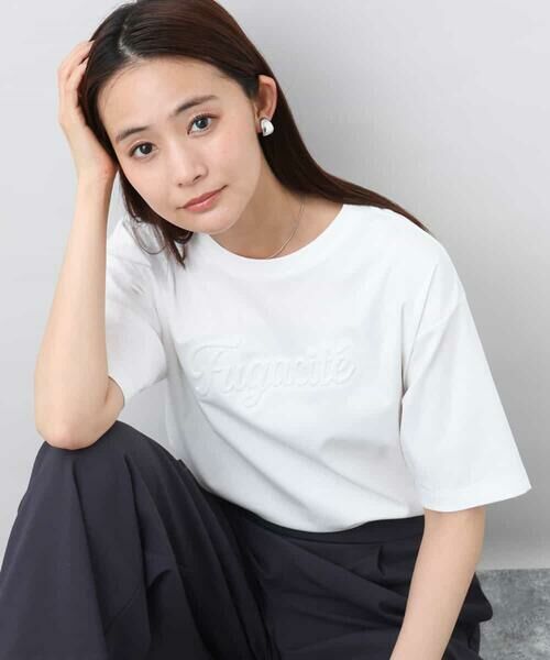 二の腕を隠すやや長めの袖丈がカジュアルな気分にぴったりのロゴTシャツ。エンボス加工のロゴデザインがアクセントに。ゆったりしているのにきれいめに着られる絶妙なサイズ感にこだわりました。