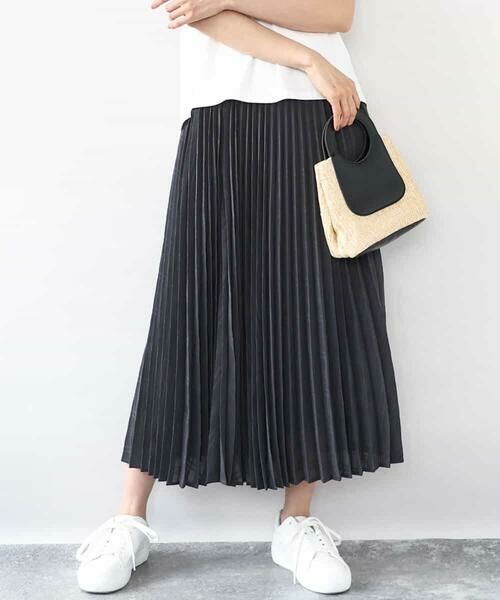動くたびに揺れる細かなプリーツが大人上品な印象のスカート。分量感があるので動きに合わせて揺れ、落ち着いた印象の素材と相まって女性らしく着こなせます。