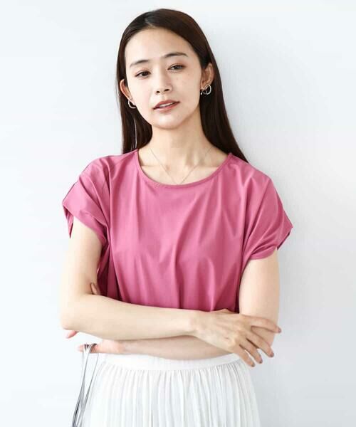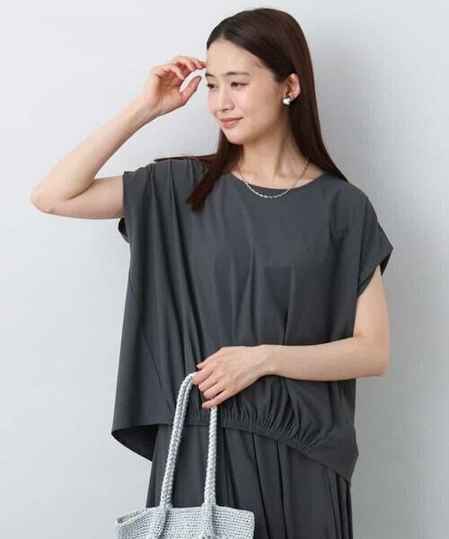 きちんと感のある見た目にカットソーの着心地が嬉しいトップスはオンからオフまで幅広く活躍してくれます。同素材のスカートとセットアップでワンピース見えの着こなしもおすすめ。速乾機能付きなので、急な天候の変化はもちろん、水辺などのレジャーシーンにも安心です。