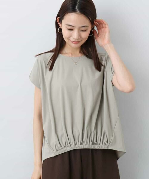 一枚で透けにくくイージーケアが魅力のジャージー素材を使用したフレンチスリーブカットソー。前裾にはギャザーを寄せ、そのまま着るだけで決まるデザインに。ボトムにインしなくても後ろ下がりのヘムラインがきれい見えします。折り返しの直線的な袖口はの脳でをすっきり見せてくれるパターンで仕上げました。