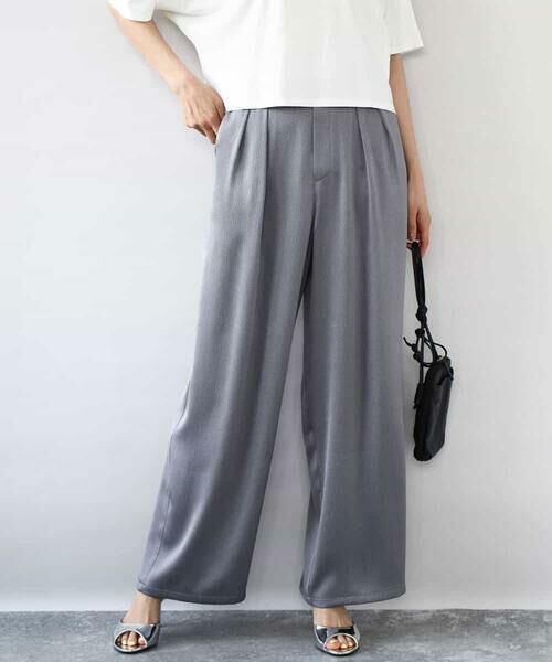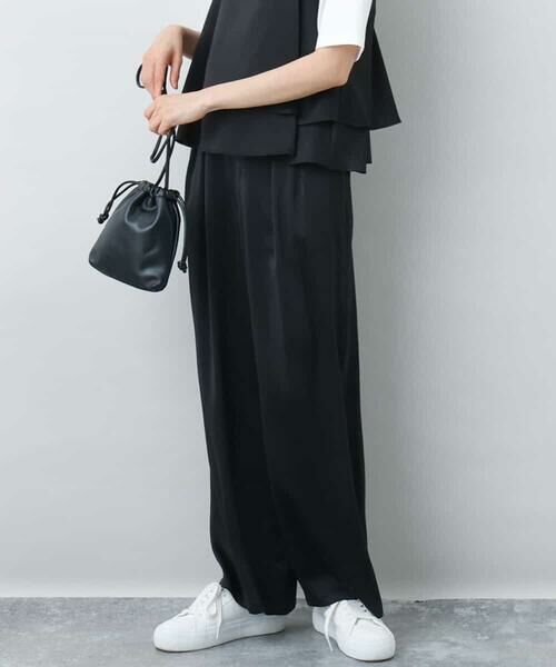 シンプルなワイドパンツは着こなしの幅も魅力。表面感がある素材はシンプルなトップスと合わせるだけでこなれ感のあるコーディネートに。同素材のキャミビスチェとセットアップでの着こなしもおすすめです。