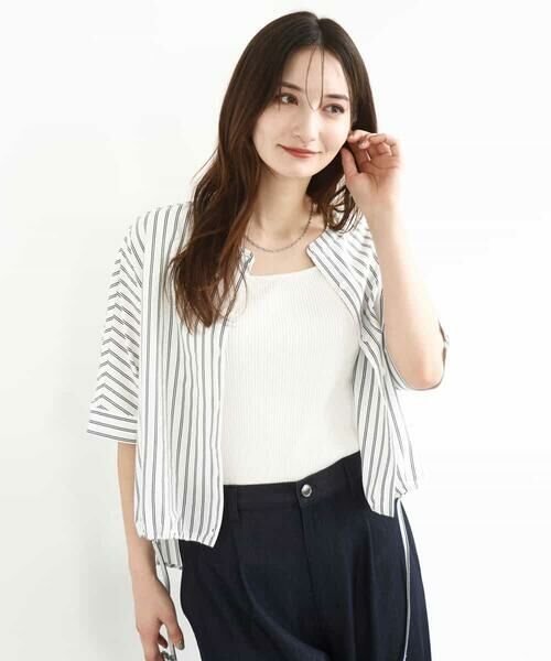 細めのストライプが大人っぽいバンドカラーのドルマンスリーブカットソー。裾のドロストデザインはそのままコードを垂らしても、くしゅくしゅっとさせてもアクセントにし。脇にスリットの入った前後差の着丈が一枚でも着映えるニュアンス感たっぷりの着こなしに。ベースのカラーがイエローはベージュ地に、ネイビーはホワイト地になります。