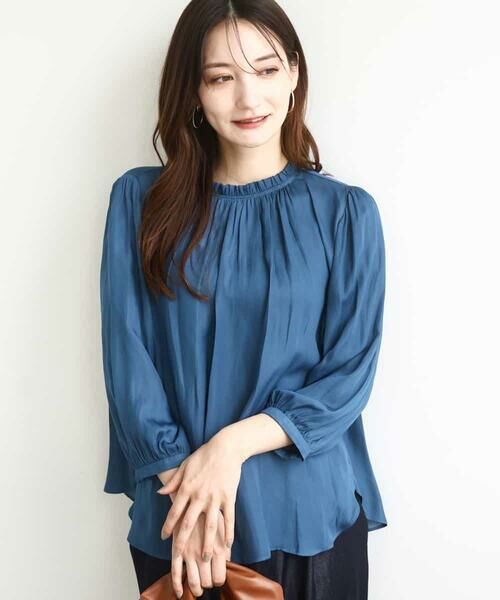 程良い光沢感がきれいめな印象のブラウスはオフィスシーンから普段使いまで大活躍。同素材のボトムとセットアップでの着こなしも楽しめます。