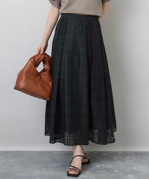 長めの丈が大人の雰囲気たっぷりのスカートです。柄を強調し過ぎないシアーチェック柄は軽さがありさりげない存在感があります。タックプリーツデザインでふんわりしたシルエットが女性らしい印象です。トップスはコンパクトにまとめると、バランスが良くなりオススメです。
