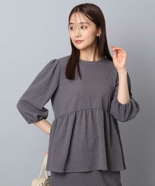 MK MICHEL KLEIN / エムケーミッシェルクラン シャツ・ブラウス | エンボス加工ペプラムブラウス/洗える(ダークグレー)