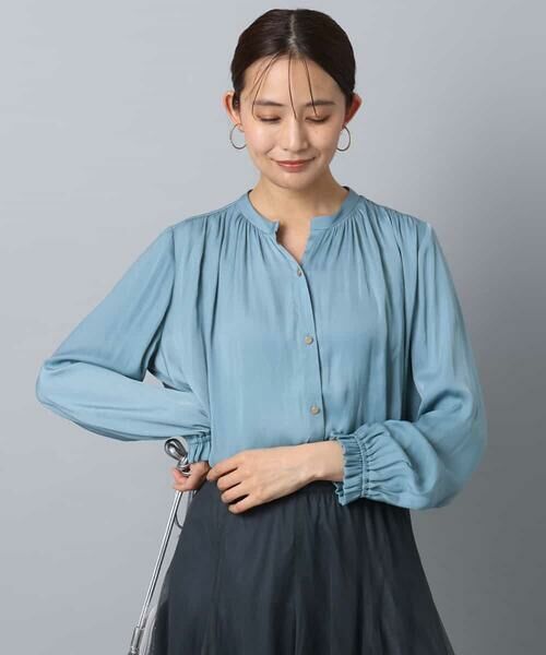 MK MICHEL KLEIN / エムケーミッシェルクラン シャツ・ブラウス | 起毛サテン スキッパーデザインブラウス/洗える(ライトブルー)