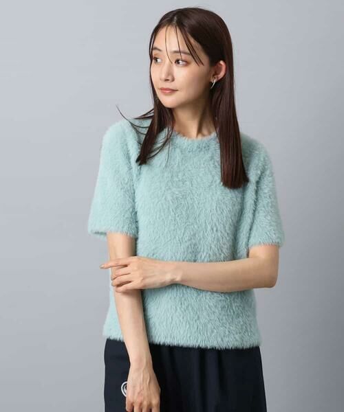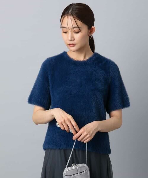 MK MICHEL KLEIN / エムケーミッシェルクラン ニット・セーター | 半袖シャギーニット/洗える(ブルー)