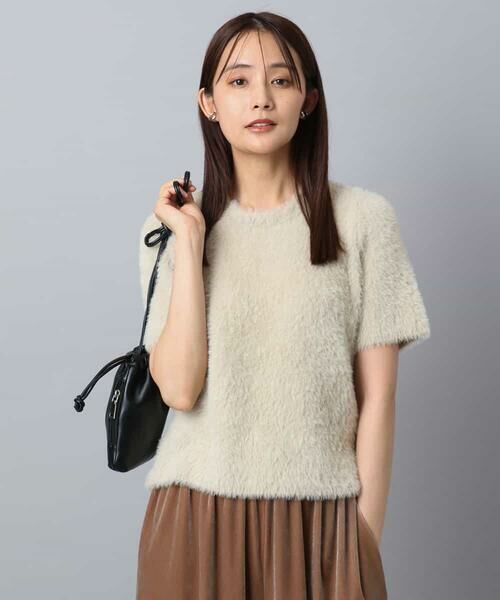 ■コーディネート ボトムを問わずコーディネートできるシンプルな半袖デザイン。見た目にも可愛いシャギーニットは上からアウターを羽織ってもアクセントに。