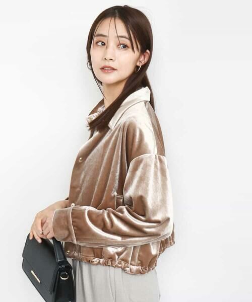 表情のあるベロアは存在感たっぷり。一枚羽織るだけで秋らしさがぐっと増すアイテムはいつものコーデも新鮮に見せてくれるはず。同シリーズでワンピースとワイドパンツもご用意しています。