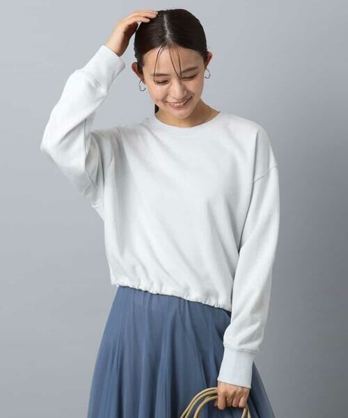 トレンドのドローコードディティールを取り入れたクロップド丈のトップス。たっぷりとした身幅と袖付けでリラックスした雰囲気で着用できます。後ろ下がりのヘムラインで簡単に抜け感が出せる一枚です。