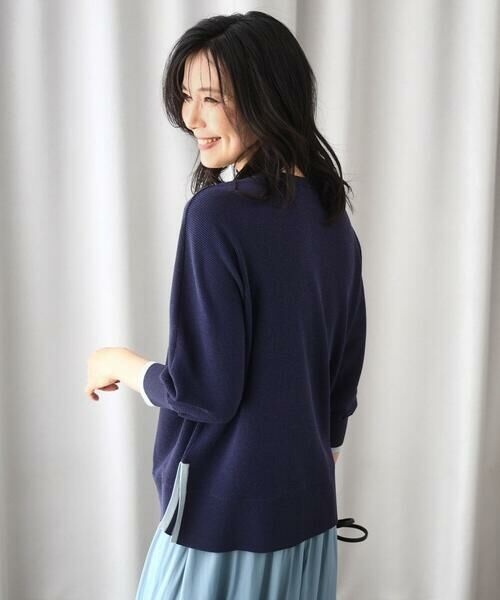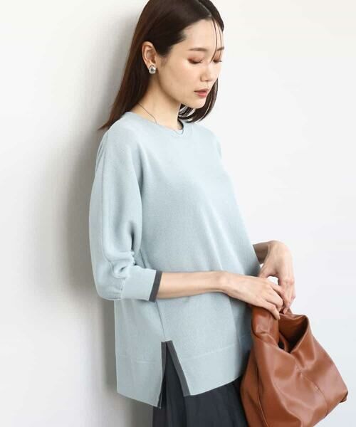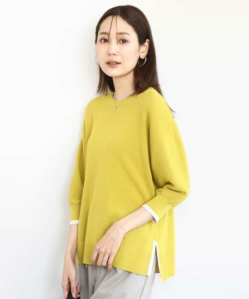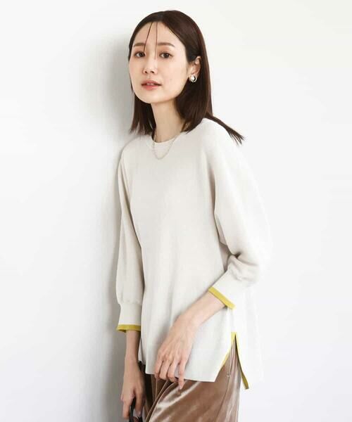 ストレスフリーなドルマンスリーブデザインながら、袖口のリブでタックアップさせることでメリハリのある着こなしが完成します。衿の内側、スリット脇、袖口先に入った配色がアクセントに。