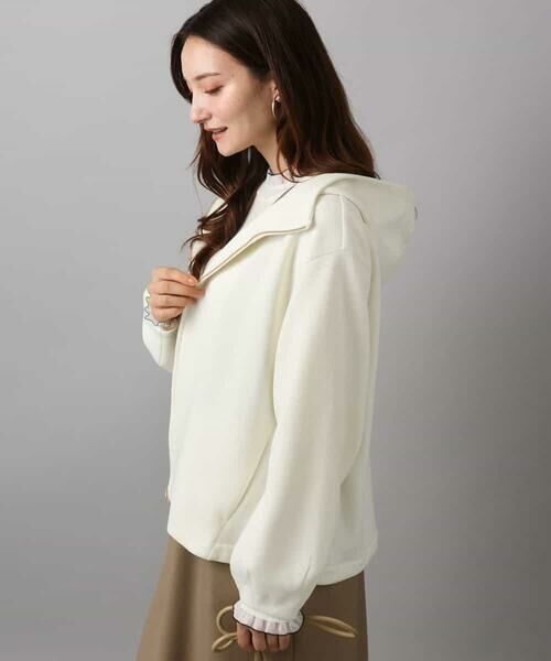 大人っぽく着こなせるフーディー。裾はドローコード入りデザイン。シンプルでありながら、裾を絞ることによってコクーンシルエットにもなるデザインに仕上げました。前中心部分はコードが寄らない仕様なので、すっきりとした印象で着こなせます。ゆったりとしたサイズ感で前後差のある丈感が女性らしいシルエットを引き立たせてくれるアイテムです。