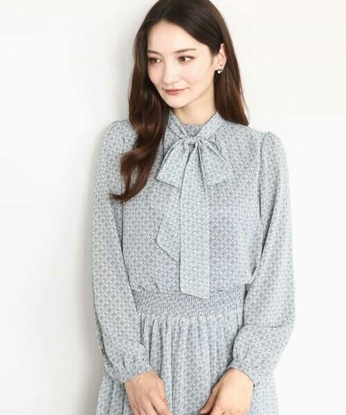 上品な印象のチェック柄のシフォンブラウス。取り外し可能のボウタイ付きで2wayで着こなし可能です。タイを外すと低めのスタンドネックで首元がクラシカルな印象に。