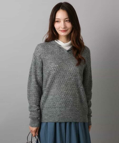 モヘア混の透かし編みが大人カジュアルな雰囲気に