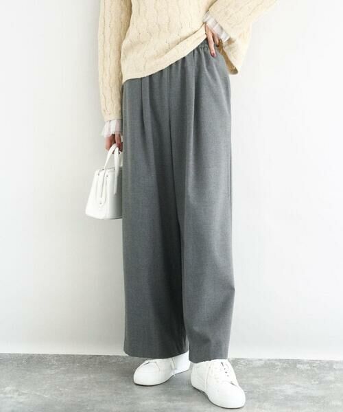 裏起毛が寒い季節に嬉しいワイドパンツ。ストレートのシルエットはきれいめもカジュアルも叶います。ウエストはプルオンタイプで共紐で調節でき、ストレスフリーな着心地に。