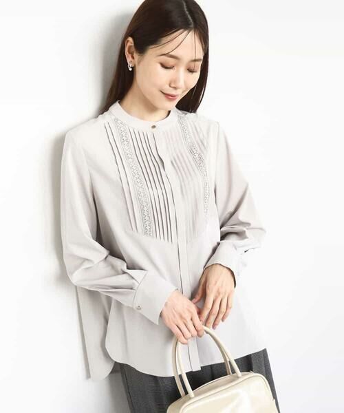 MK MICHEL KLEIN / エムケーミッシェルクラン シャツ・ブラウス | フロントピンタックレースブラウス/洗える(ライトグレー)