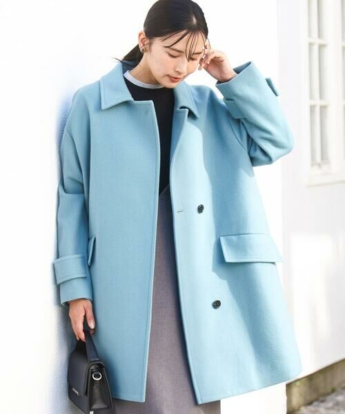 衿にタブが付いたトレンドデザインのウールコート。フロントを開けても衿がきれいに返るようなパターンも特徴。ゆったりとした程よくゆとりのあるサイズ感はインナーも選びません。衿元のタブは外したときは内側に取り付けてしまえるのも嬉しいポイント。