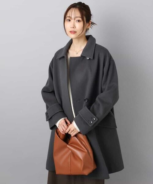 衿を倒してステンカラーのコートとしても、衿を立ててタブを留めた着こなしもどちらも決まるデザインは様々なシーンやコーディネートと好相性。ゆったりとしたサイズ感は、インナーに厚みのあるニットも着こめるため、真冬も安心です。