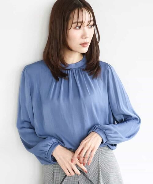 MK MICHEL KLEIN / エムケーミッシェルクラン シャツ・ブラウス | 起毛サテンバンドカラーギャザーブラウス/洗える(ベージュ)