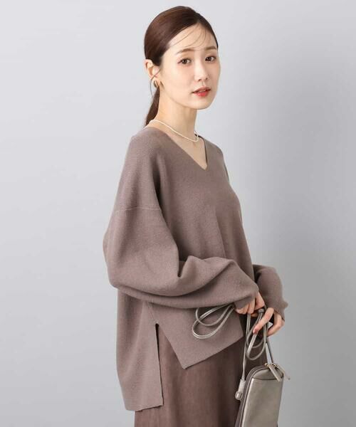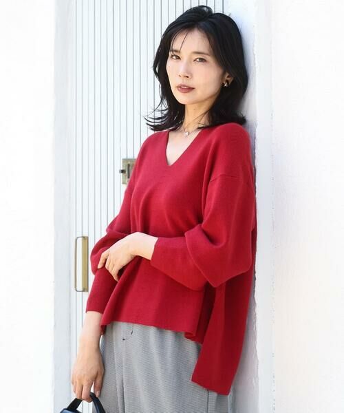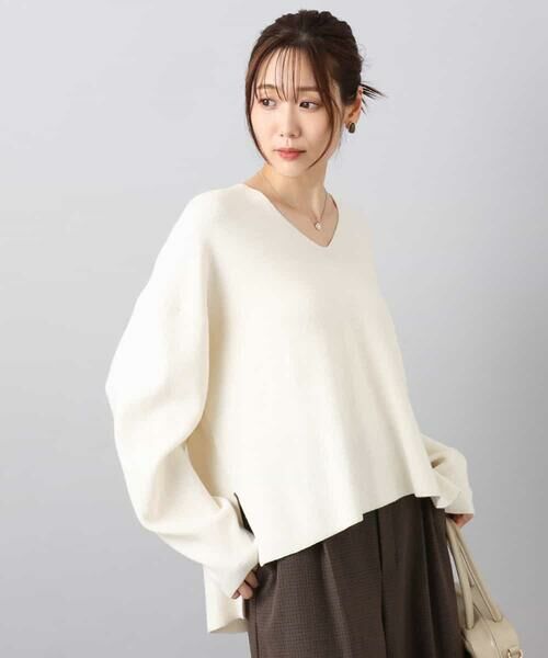 程よくリラクシーなシルエットとVネック開きが女性らしさをぐっと引き立てるニットは、シンプルだからこそ使い勝手抜群。大人のコーディネートに抜け感とこなれ感をプラスしてくれます。アウターも羽織りやすい程よい肉感も嬉しい。