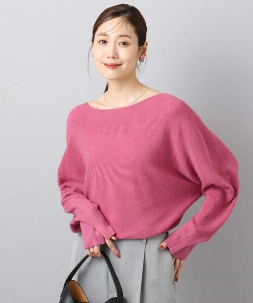 MK MICHEL KLEIN / エムケーミッシェルクラン ニット・セーター | ラメ入りドルマンスリーブ畦編みニット/洗える(ピンク)