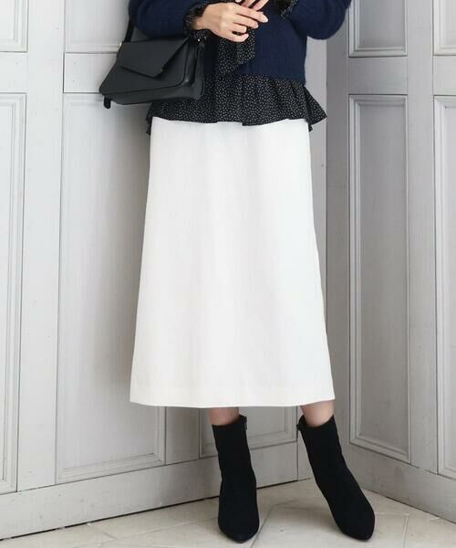 すっきりとしたシルエットが上品できれい見えするスカートはお仕事などのONシーンにも活躍してくれます。腰周りがすっきりとしているので、トップスをインしたときはもちろん、アウトでももたつかないのも嬉しいポイント。