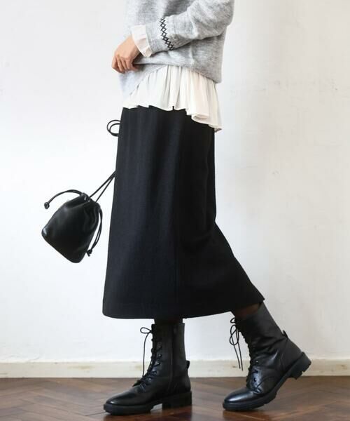 ネップ状の素材が暖か見えなすっきりシルエットスカート