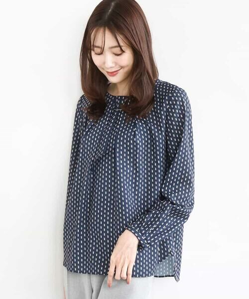 MK MICHEL KLEIN / エムケーミッシェルクラン シャツ・ブラウス | ボウタイ風幾何柄ブラウス/洗える(ネイビー)