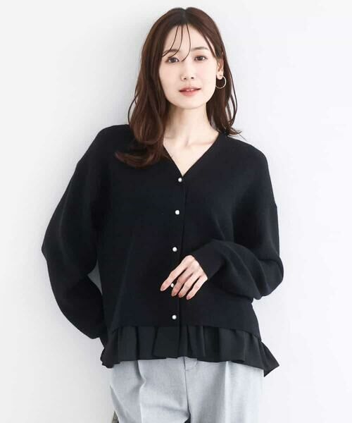 MK MICHEL KLEIN / エムケーミッシェルクラン カーディガン・ボレロ | ペプラムデザインVネックニットカーディガン/洗える(ブラック)