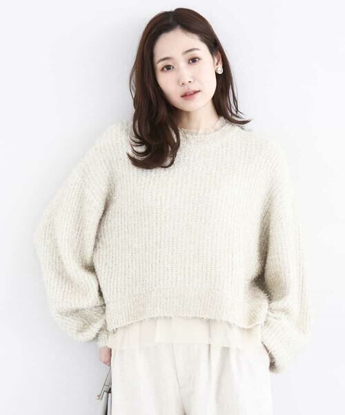 MK MICHEL KLEIN / エムケーミッシェルクラン ニット・セーター | ミニフリルデザインキラキラニット/洗える(アイボリー)