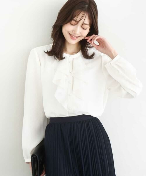 MK MICHEL KLEIN / エムケーミッシェルクラン シャツ・ブラウス | ラッフルフリルブラウス/洗える(アイボリー)