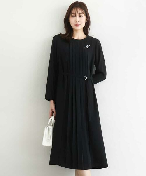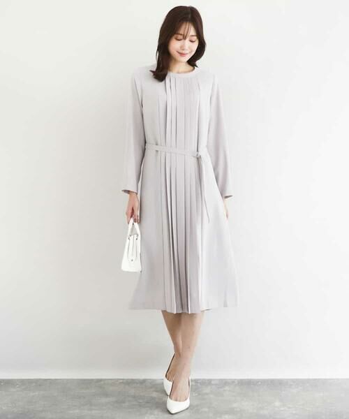 プリーツのデザインにウエストベルトが女性らしいワンピース。プリーツはをフロント部分のみにすることですっきりとした印象が叶います。結婚式や二次会、パーティーシーンにもおすすめです。ベルトは取り外し可能。お好みでシルエットの違いを楽しめます。