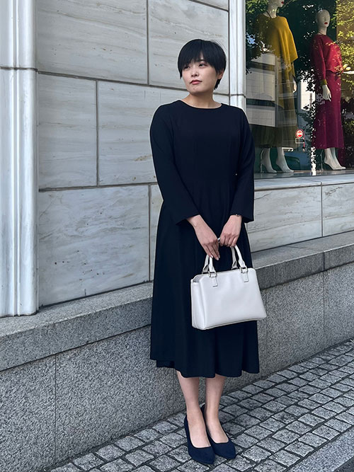 セレモニーなどのきちんとしたシーンにも好印象の膝が見えない着丈は座ったときも安心。ジャケットやコートとも相性良く着合わせられます。シンプルなデザインなので、ネックレスやブローチなど、お手持ちのアイテムで華やかさをUPさせても素敵に決まります。