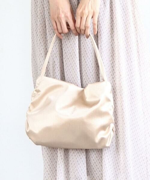 艶めくサテン生地で仕立てた、コンパクトなトートバッグ。