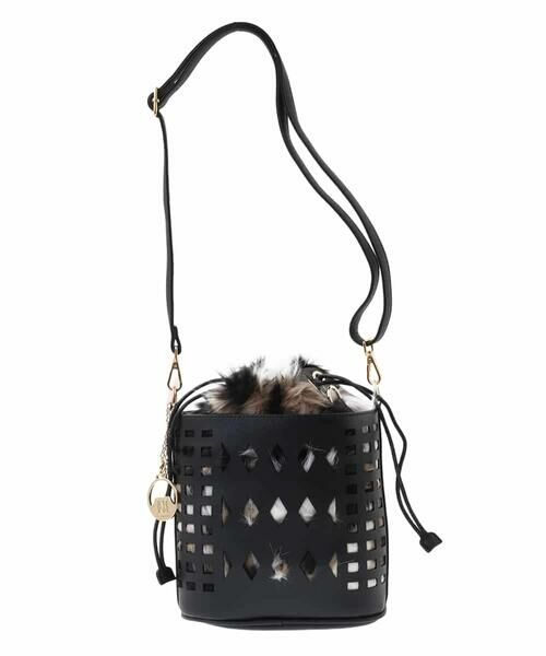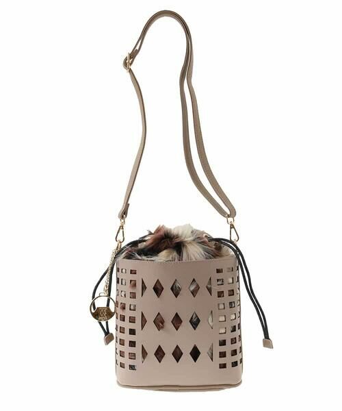 パンチング加工を施した合皮素材に、フェイクファー巾着をレイヤードした個性派バッグです。