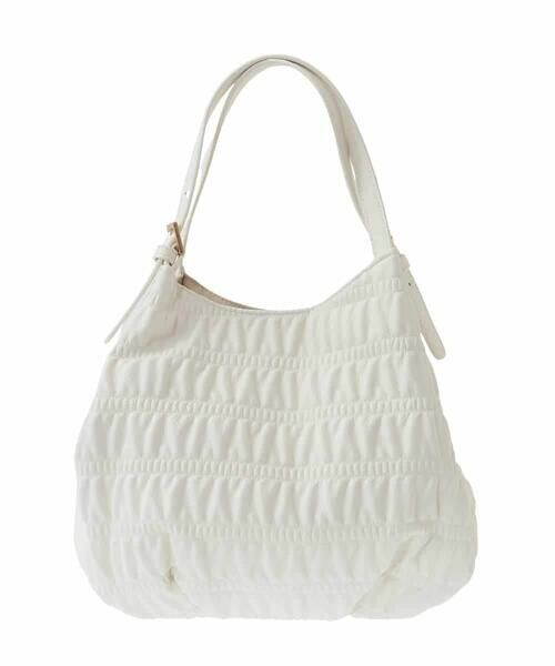 凸凹としたギャザーディテールが個性的なデザインバッグです。